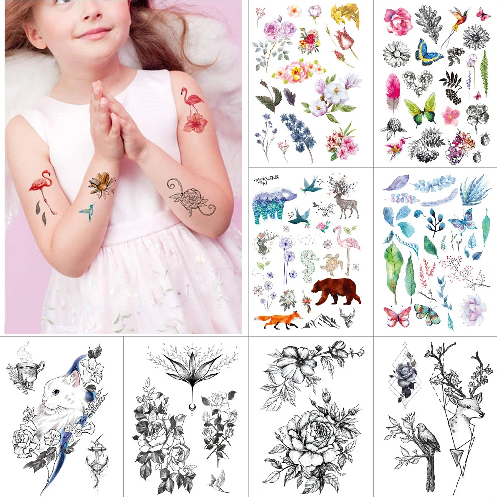 Faux Tatouage Temporaire Pour Enfant Femme Et Homme 210x140mm Autocollants Mignons Flamand Rose Fleur Feuille Perroquet Animal Miniature Aliexpress