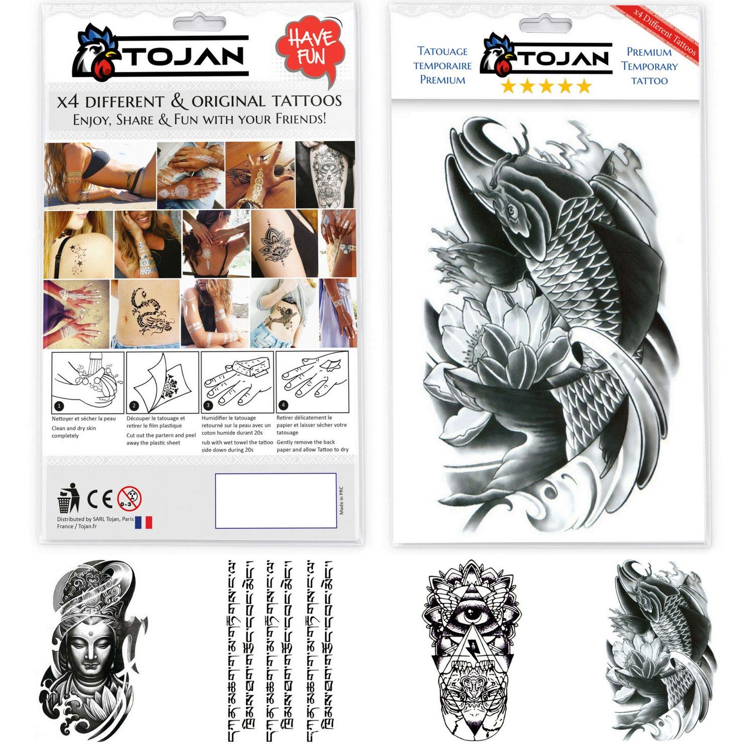 Le tatouage temporaire est extrêmement réaliste et permet de changer de style à volonté. Le rendu est ultra-réaliste grâce à notre qualité dimpression. Les tatouages éphémères les moins cher de France.