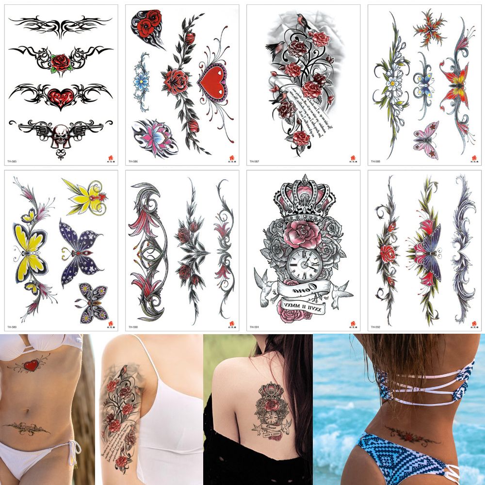 Acheter Mode Bijoux Bracelet Poignet Taille Chaine Bras Tatouage Temporaire Autocollant Designs Femme Fleur De Coeur Papillon Poitrine Body Art Tattoo Decal De 0 6 Du Homimly Fr Dhgate Com