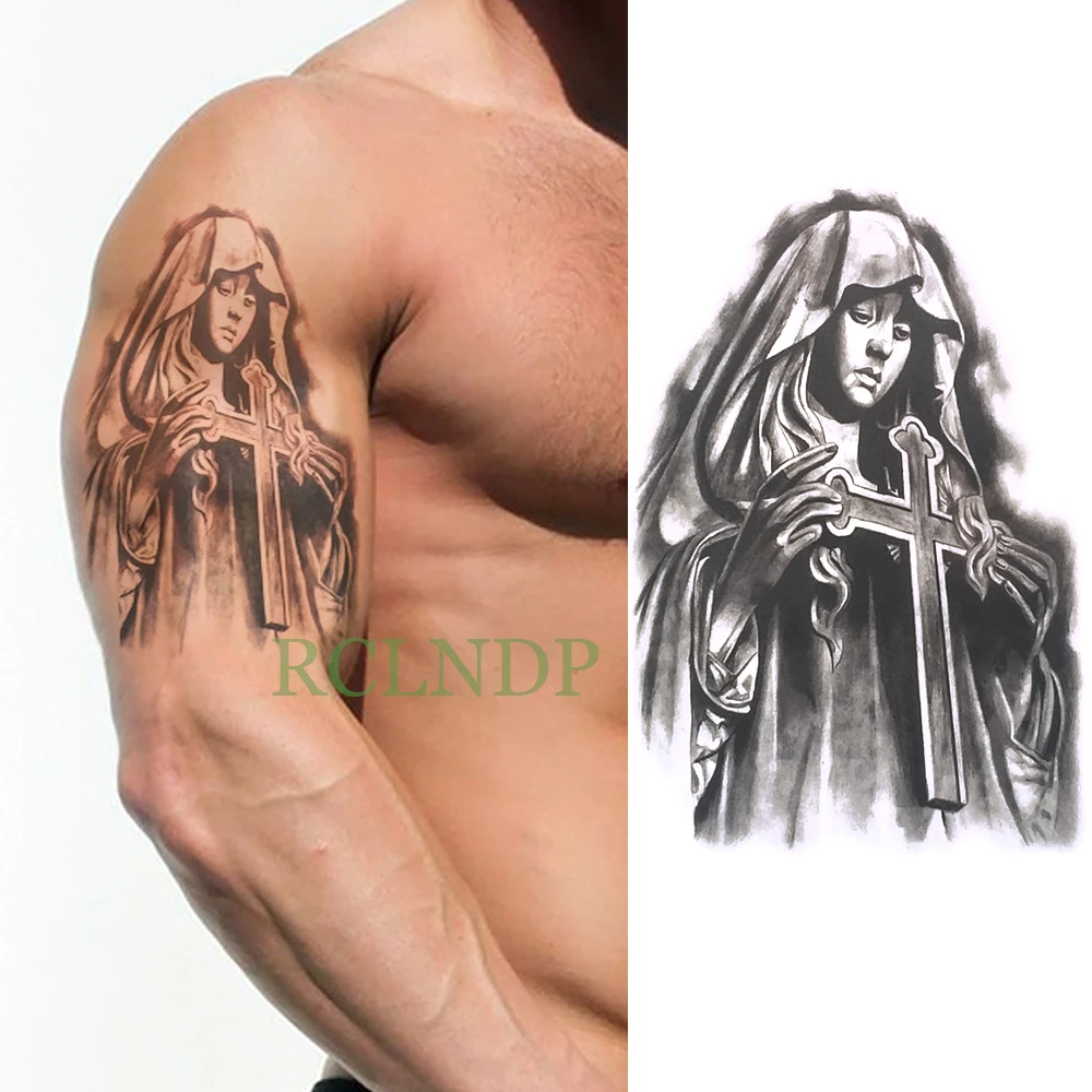 Impermeable A L Eau Temporaire Tatouage Autocollant Christianisme Vierge Marie Croix Faux Tatto Flash Tatoo Dos Jambe Bras Ventre Pour Femmes Fille Hommes Aliexpress