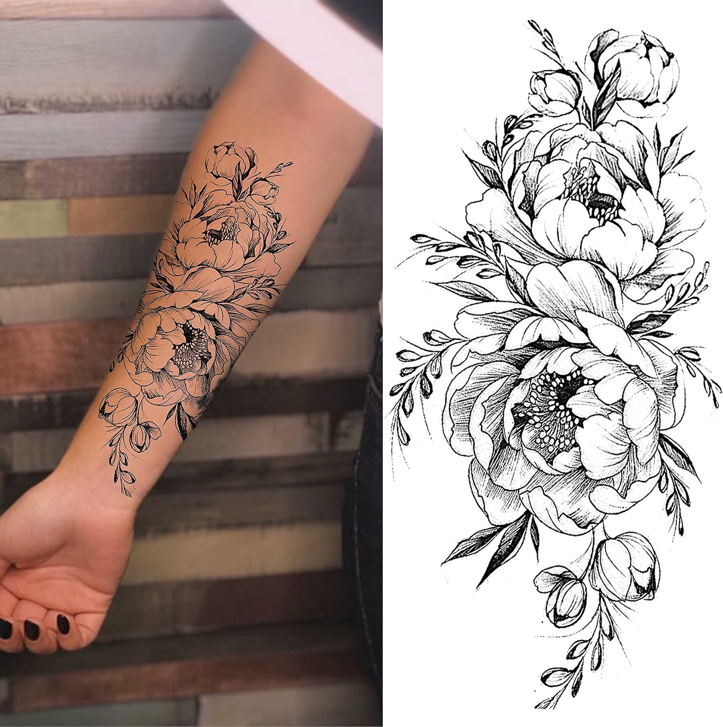 Laroi 8 Feuilles Realiste Fleur Tatouage Ephemere Femme Grande Pivoine Rose Tatouages Temporaires Autocollants Bras Jambes Flore Impermeable Noir Tatouages Temporaires Filles Adultes Sexy Faux Tattoo Amazon Fr Beaute Et Parfum