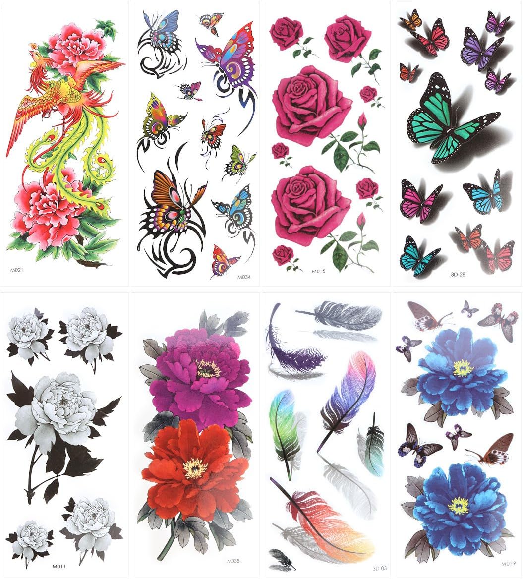 Ultnice Tatouages Ephemeres Motifs Varies Papillons Et Fleurs 8 Planches Amazon Fr Hygiasne Et Soins Du Corps