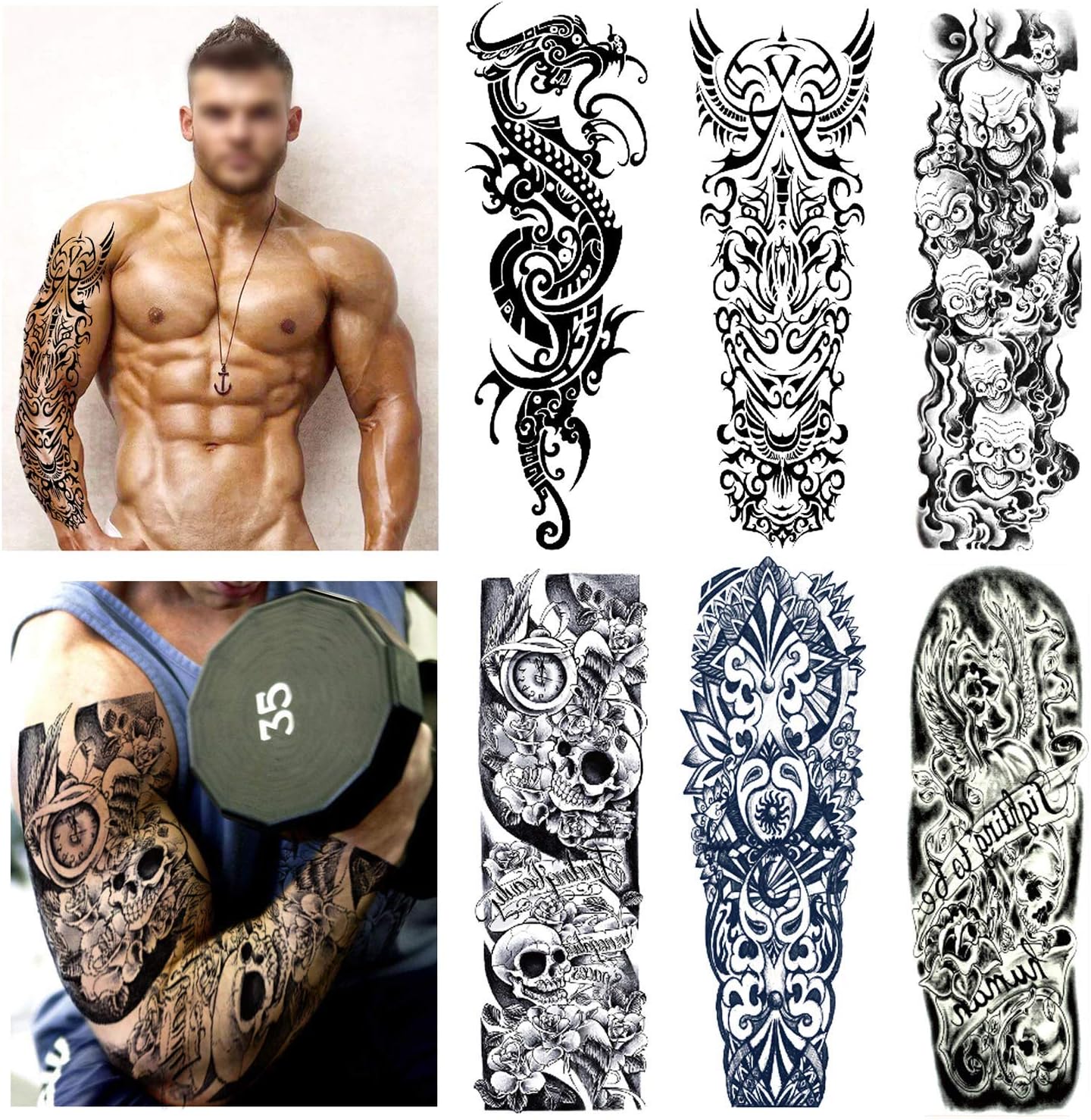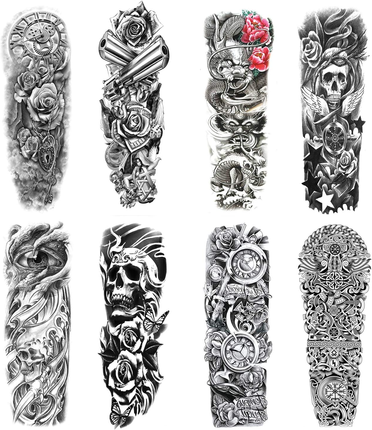 Extra Large Temporaire Tatouages 8 Feuilles Bras Complet Faux Tatouages Et 8 Feuilles Demi Bras Tatouage Autocollants Pour Hommes Et Femmes 16 Sheets Amazon Fr Beaute Et Parfum