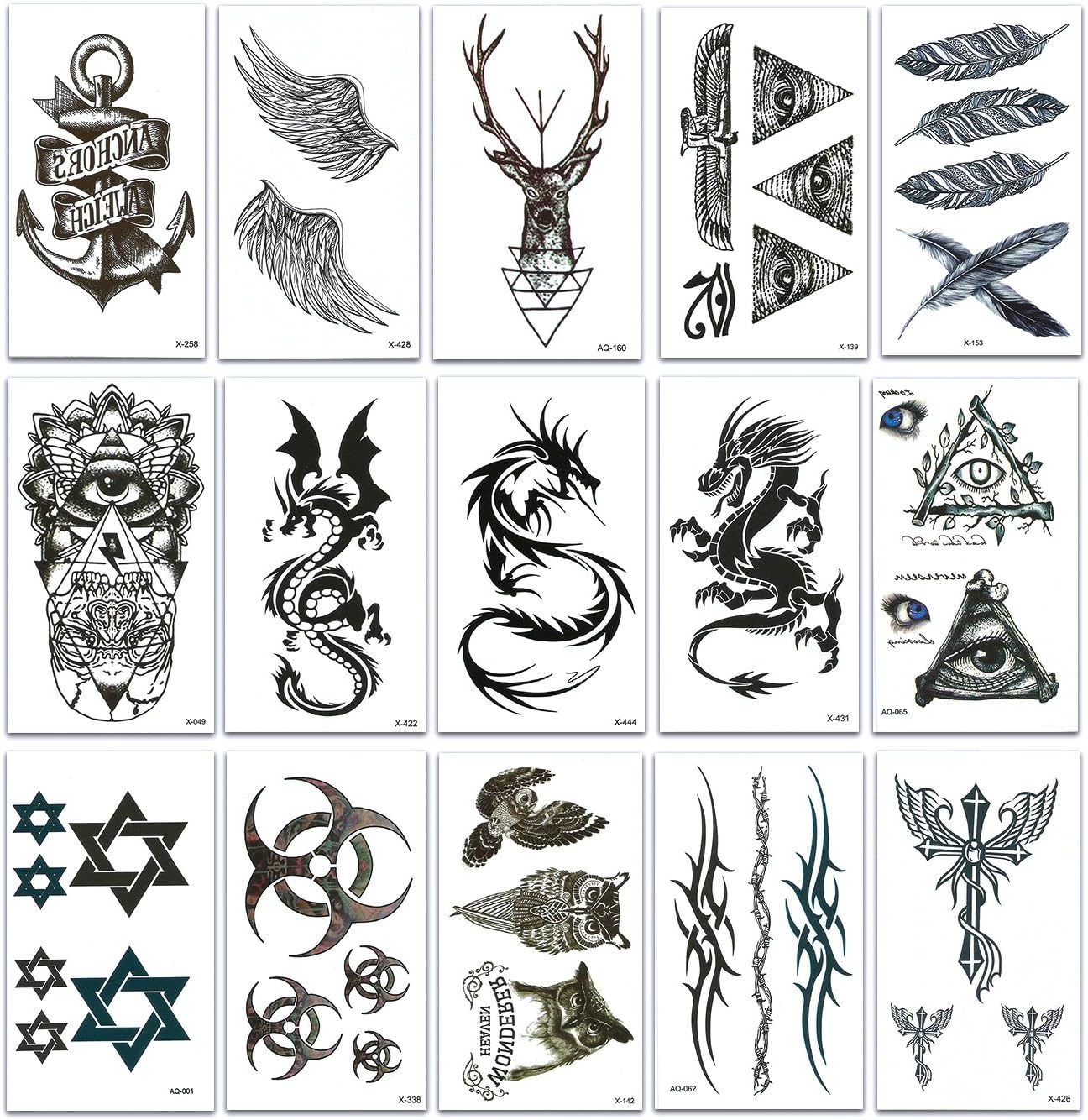 Chileeany Lot De 15 Tatouages Temporaire Tattoos Etanche 105x60 Mm Tatouage Temporaire Pour Homme Femme Adulte Motifs Varies Amazon Fr Beaute Et Parfum