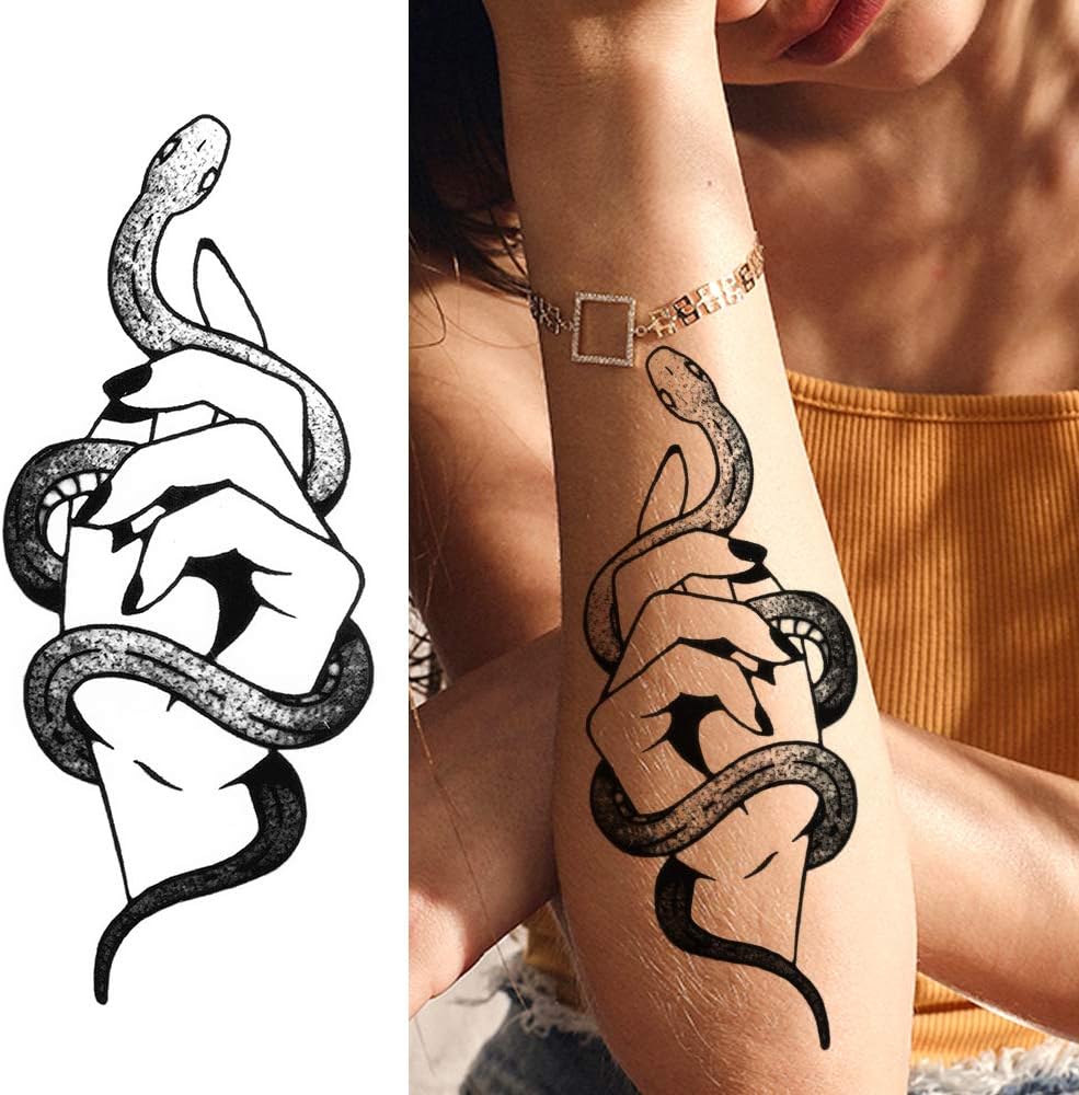 Impermeable A L Eau Temporaire Tatouage Autocollant Sombre Vieille Ecole Sombre Serpent Feuille Flash Tatouages Noir Lotus Art Corporel Bras Faux Tatoo Femmes Hommes Aliexpress