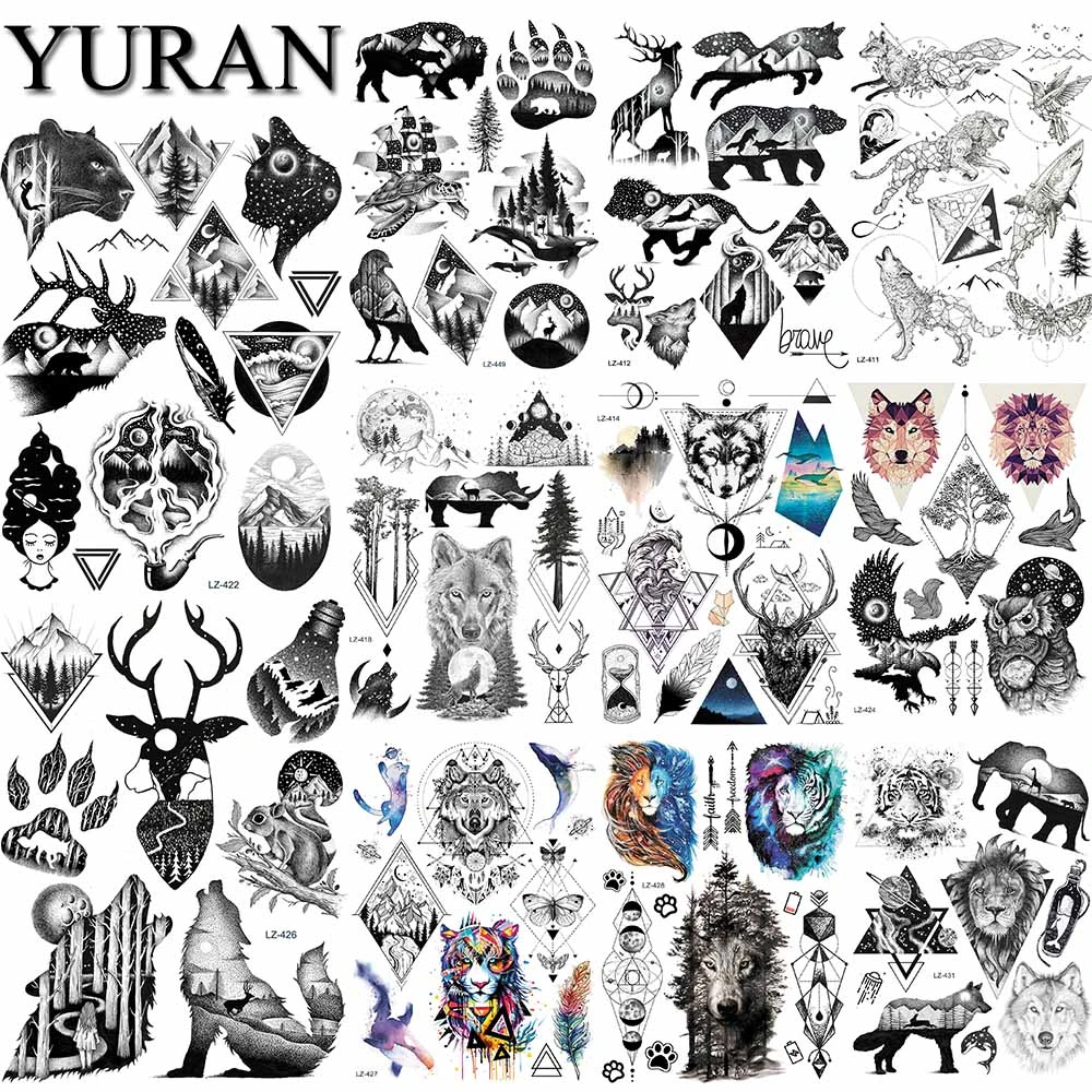 Autocollant De Tatouage Temporaire Motif Loup Tribal Arbre De Pin Lune Renard Impermeable Bras D Art Corporel Foret Faux Tatouage Pour Hommes Et Femmes Aliexpress