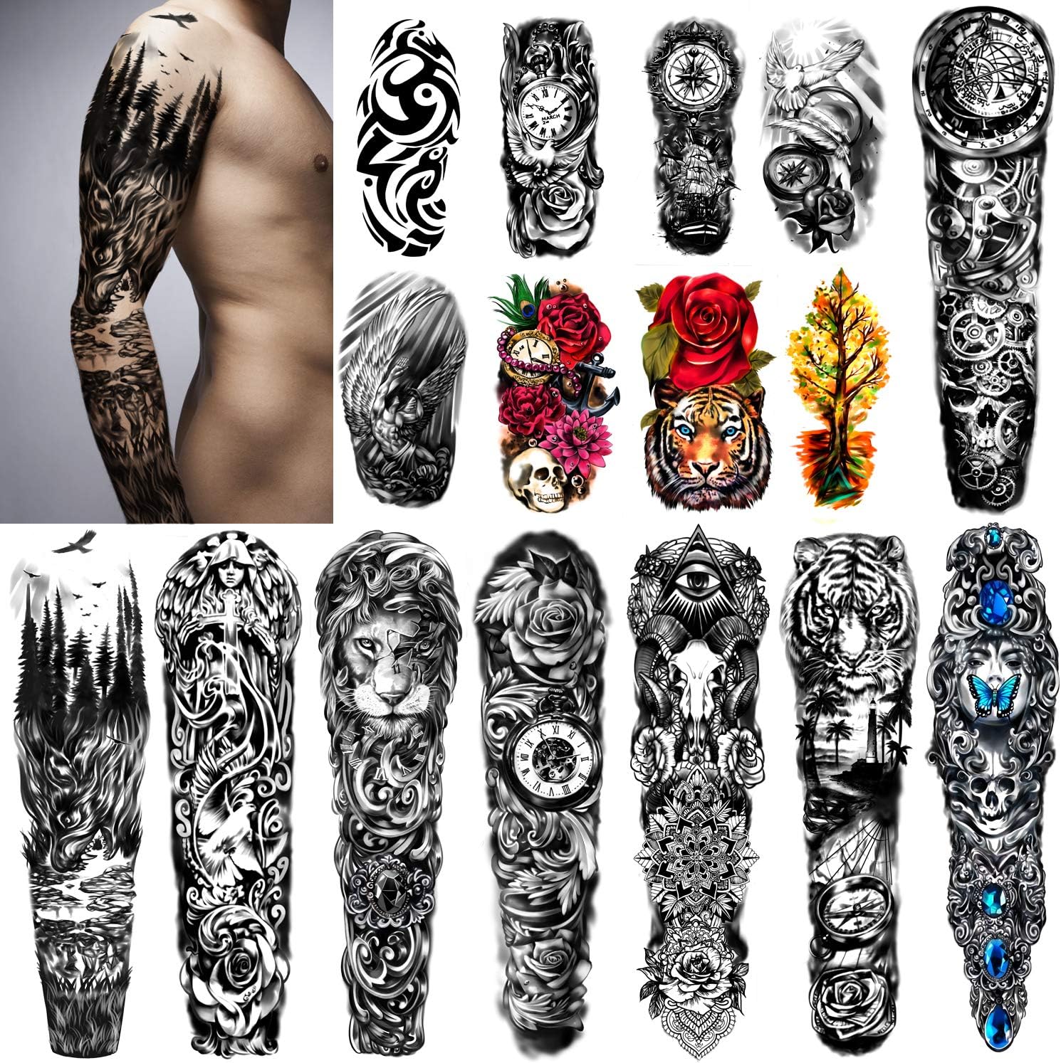 Tatouages Temporaires Impermeables Extra Larges 8 Feuilles Bras Pleins Faux Tatouages Et 8 Feuilles Demi Bras Autocollants De Tatouage Pour Hommes Et Femmes 58x18 Cm Amazon Fr Beaute Et Parfum