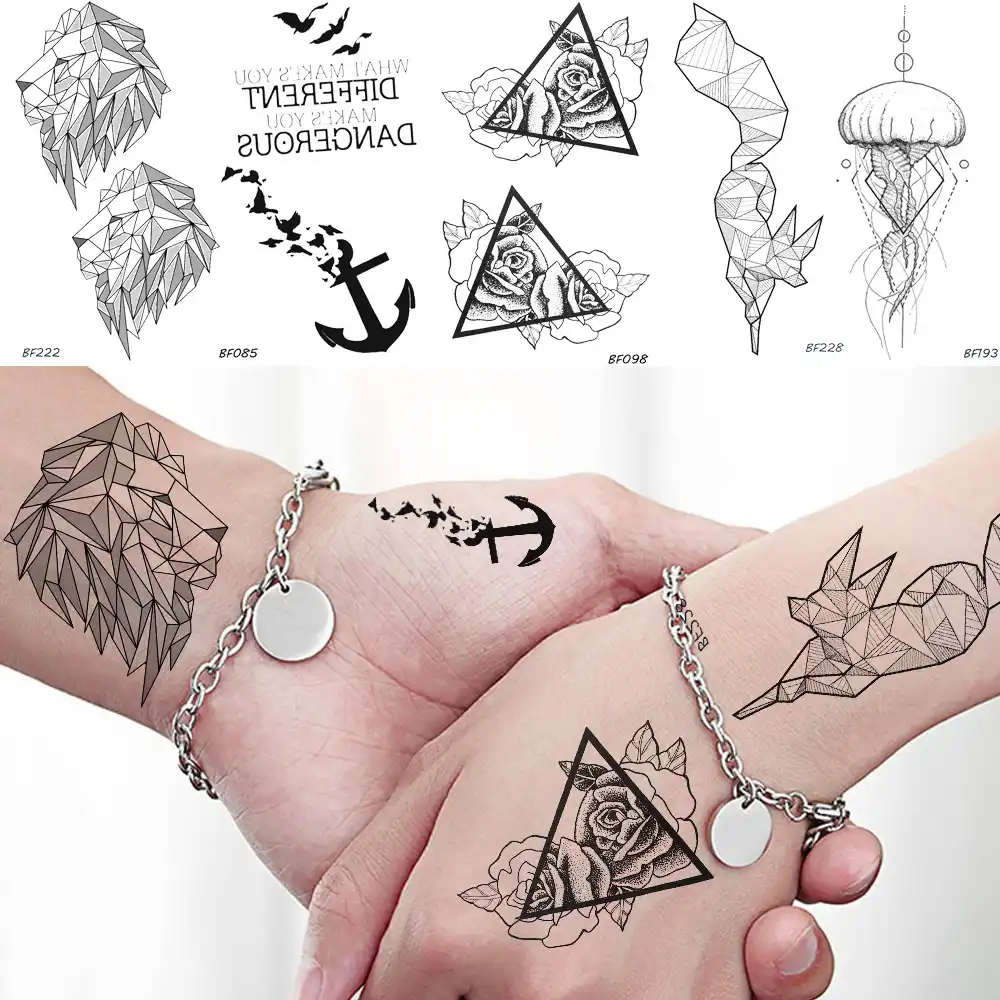 Baofli Autocollant De Tatouage Tempopary Motif Geometrique Lion Renard Rose Etanche Triangle Ancre De Meduse Noir Sexy Corps Bras Aliexpress