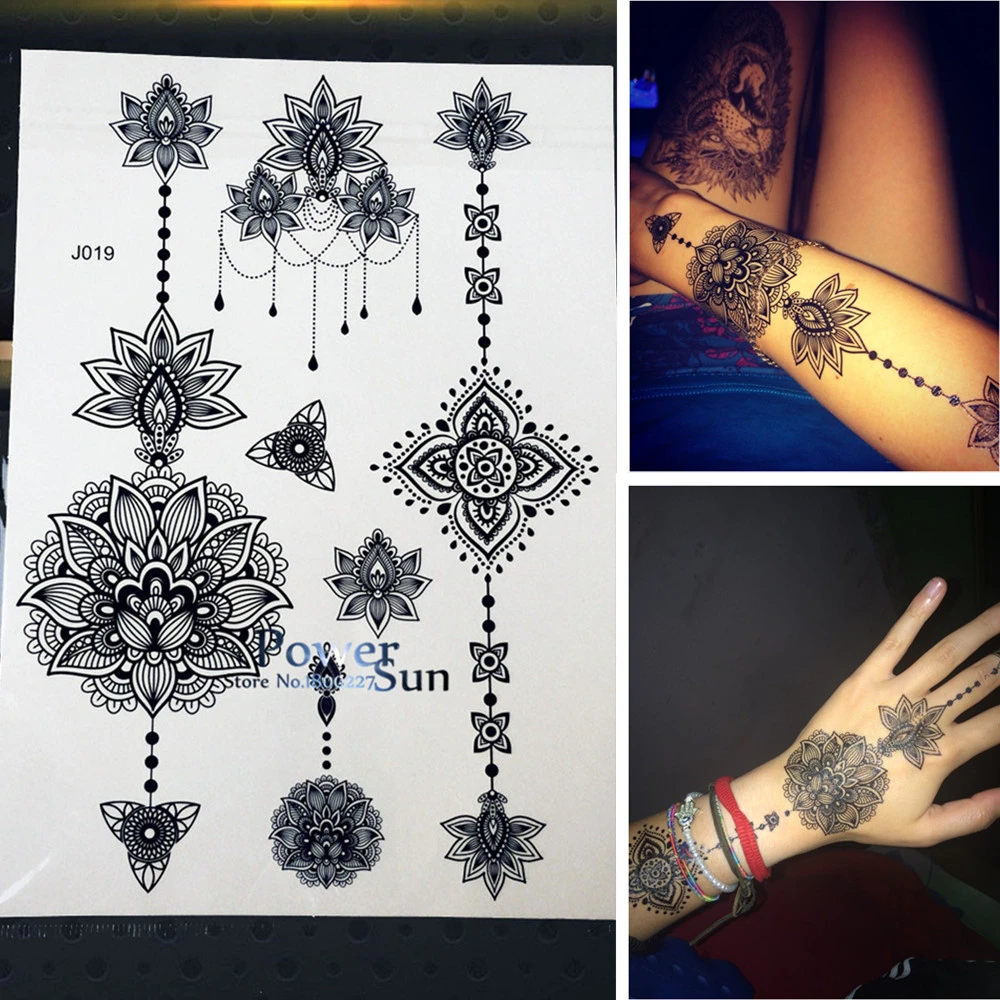 Autocollants De Tatouage Pour Femmes 25 Styles Flash Grande Fleur Pendentif Bijoux Bras Etanche Faux Henne Encre Noire Aliexpress