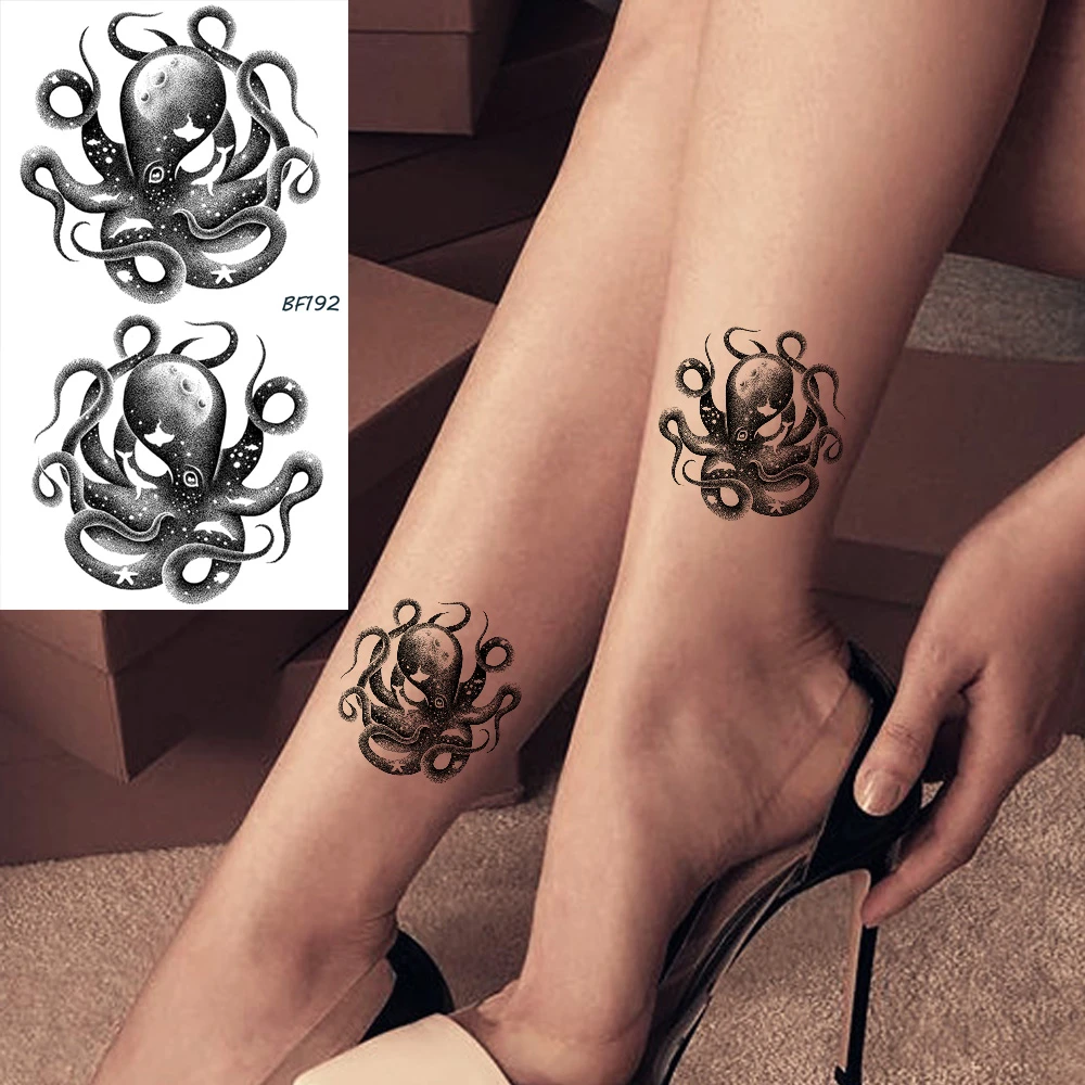 Autocollants De Tatouage Temporaire Impermeable Pour Femme Et Homme Faux Poulpe Noir Calmar Galaxy Tato Seiche Cheville Bras Art Aliexpress