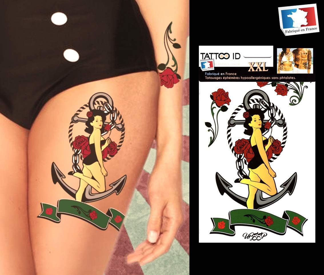 Tatouage Ephemere Temporaire Pinup Roses Ancre Tattoo Id Xxl Hypoallergenique Fabrique En France 1 Planches 22cm X 14 5cm Homme Femme Amazon Fr Beaute Et Parfum
