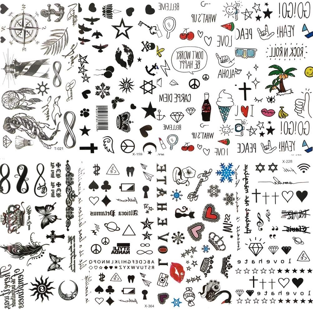 Coktak 8 Feuilles Tatouage Ephemere Enfants Anime Noir Petites Feuilles Etoiles Autocollant De Tatouage Infini Amour Femmes Corps Doigt Etanche Tatouage Temporaire Filles Papier Diamants Tattoo Amazon Fr Beaute Et Parfum