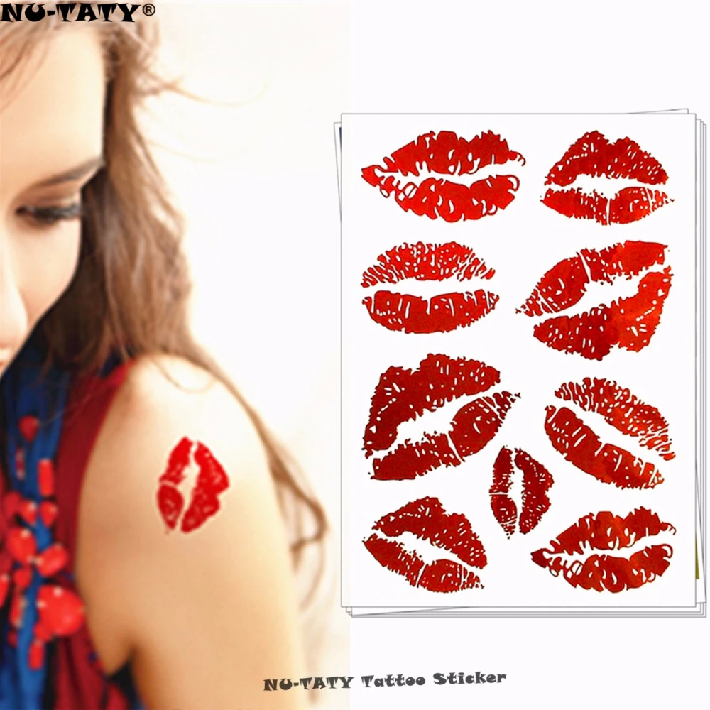 Nu Taty Autocollant De Tatouage Temporaire A Levres Rouges 17x10cm Etanche Style De Voiture Aliexpress