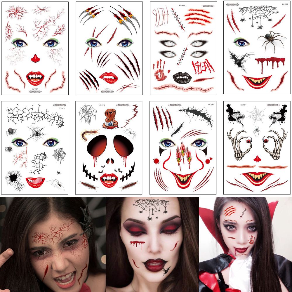 Acheter Jour Halloween Tatouage Temporaire Visage Bras Du Cou Autocollant Bricolage Maquillage Du Corps Pour Les Enfants Homme Femme Horrible Scar Blooding Festival Dancing Party Tattoo De 0 75 Du Homimly