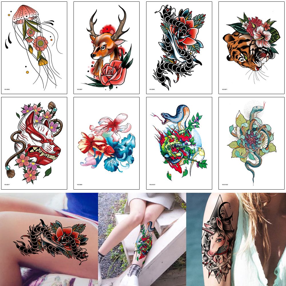 Tatouage Temporaire Pour Femme Grand Autocollant Couleur Serpent Tigre Dragon Corps Etanche Aliexpress