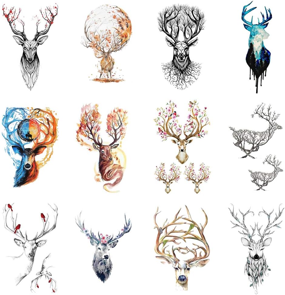Wyuen 12 Pcs Lot Cerf Autocollant De Tatouage Temporaire Pour Les Femmes Hommes Faux Tatoo Body Art Adulte Impermeable A La Main Autocollants 9 8x6 Cm W12 07 Amazon Fr Beaute Et Parfum