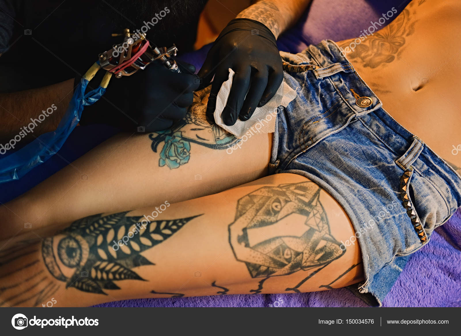 Faire Un Tatouage Sur La Jambe D Une Femme Image Libre De Droit Par Fxquadro C 150034576